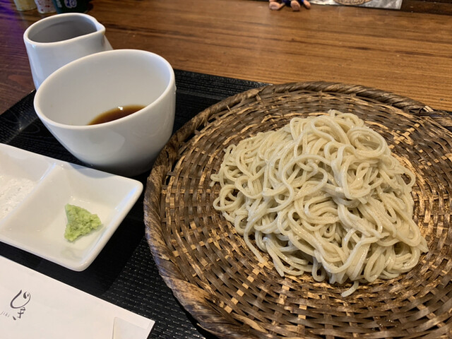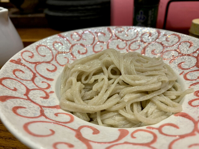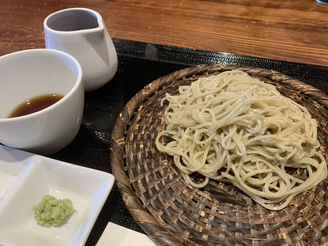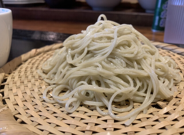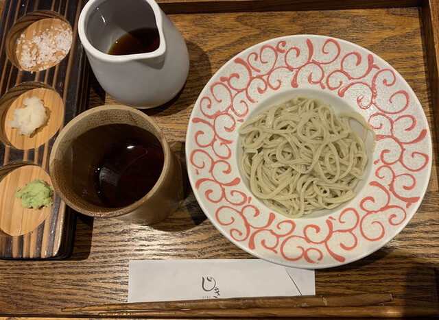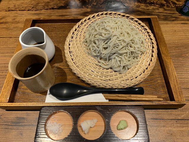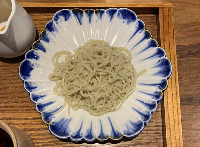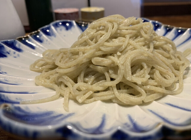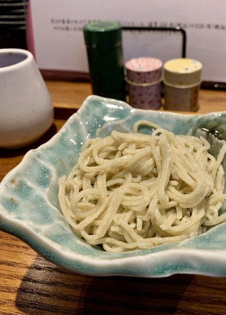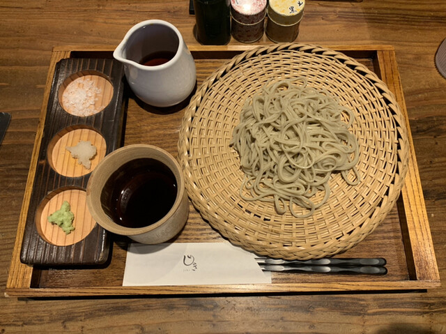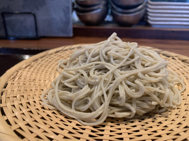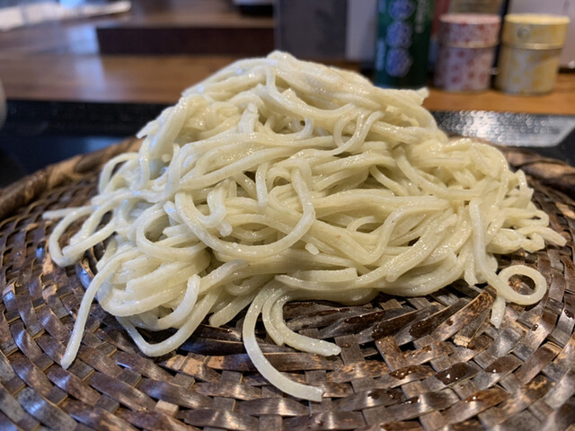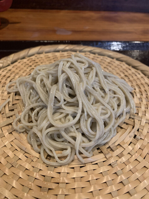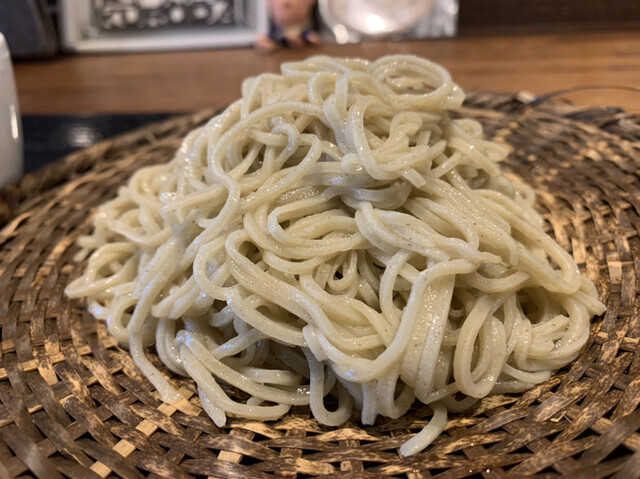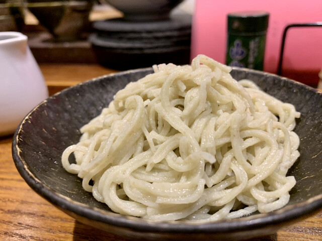 ほんのり緑掛かった色にテンションアップ。例えるなら繊細な女性的、やや細めでしなやかな麵線はしっとりとしながらもきちんとコシも入る。ズズッと手繰れば青々しい風味が抜け、後味には蕎麦本来の甘味が追う…これは旨い。