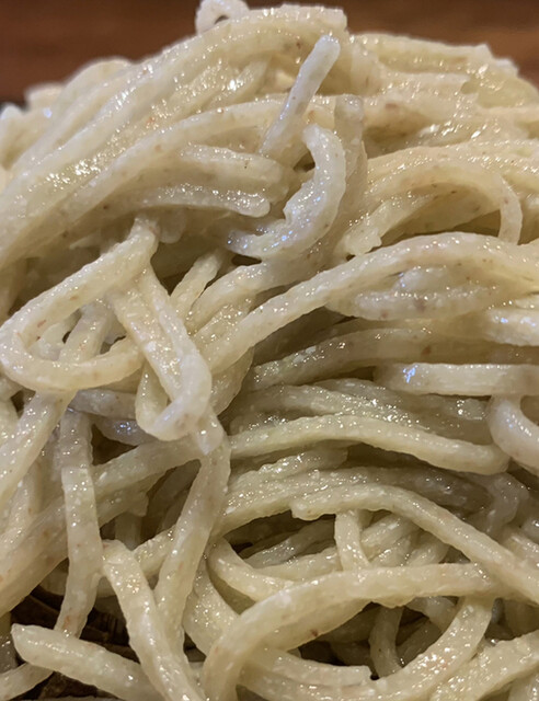 そしてSNSを活用した情報発信にも長けており、その日扱う蕎麦粉や蕎麦のスタイルを画像と解説でリアルタイム発信する。すると私のような単純バカな蕎麦喰いはホイホイと引き寄せられるし、より自信のある珍しい蕎麦の場合はDMで直接誘ってくれる。まるでデジタルの世界で、自らを売り込んでくるセールスマン蕎麦だ。