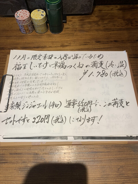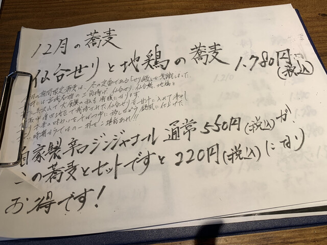 焼き鳥料理店じきの蕎麦が良いらしい…そんな情報を聞きつけ訪問してみる事に。私自身も蕎麦の提供は知っていたが、専門店では無いので優先順位が中々上がらなかった店。しかしながら…