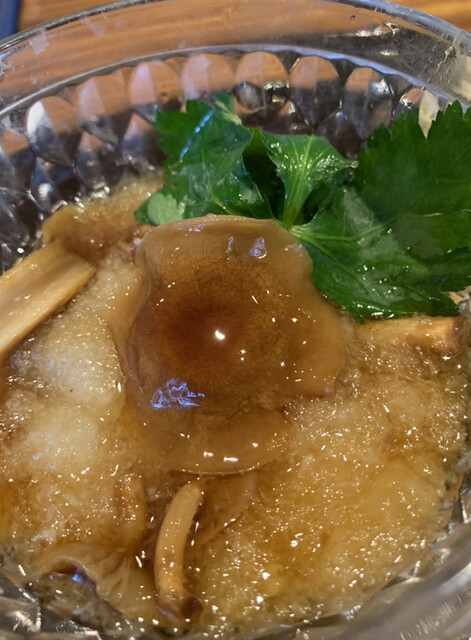 汁と良く絡み、噛んだ時に粒子が弾けるような食感と、口に広がる大地の旨味と甘味…粗挽き蕎麦の魅力が満載でとても美味かった。