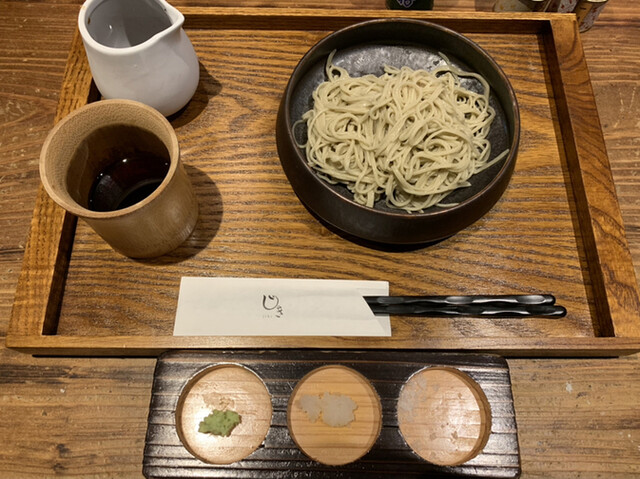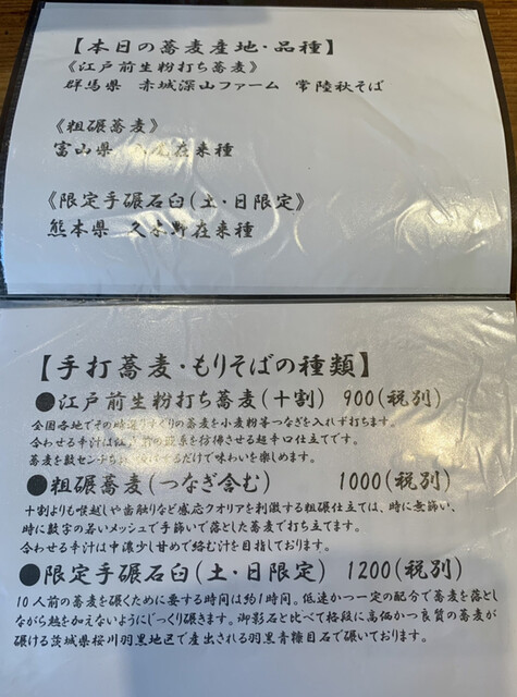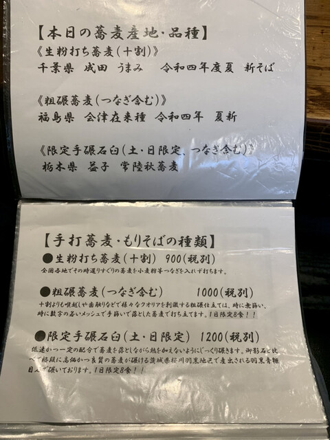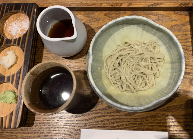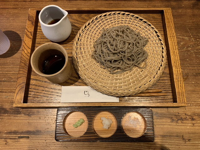 まずは税込み価格が潔く嬉しい。そして十割の手打ち蕎麦は2種類。通常と吟醸をオーダーした。タイミングで変わる蕎麦粉はご主人が都度状態や情報をチェックして最良のものをチョイスする。