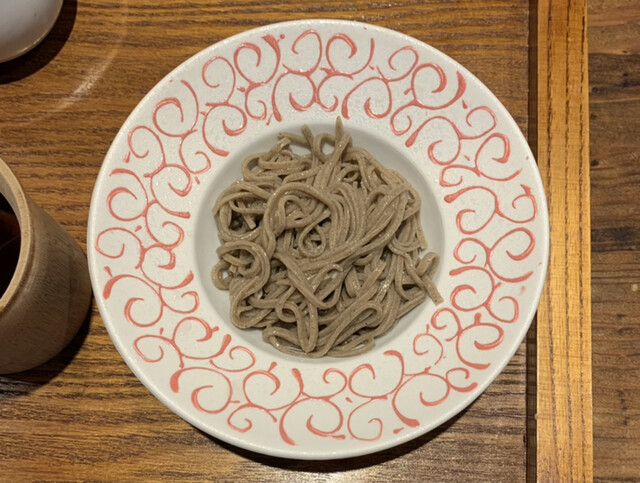 汁も良い。枯れ節の華やかさがさりげなく、ドッシリとした節感もあり、それを覆うようにムチっとした旨味の半生返しが全面に出るが、良く馴染んだ中濃中口の味わいで、蕎麦の邪魔をせずシンクロするタイプ。但しもう少し馴染んで洗練さが加われば尚良いだろう。