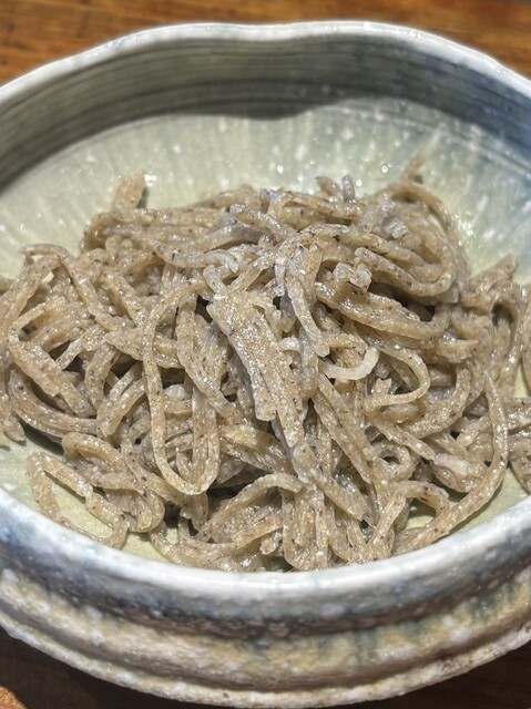 信濃一号、キタワセと並ぶ日本三大栽培種である常陸秋そば、北海道でも一部ブレンドで使用している店もあるが、100%は珍しいし、蕎麦喰いにはありがたい。こちらは製粉したものを仕入れて使用、ただこの蕎麦が素晴らしかった。