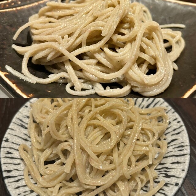 要はその粉の個性や魅力を最大限に引き出すために、打ち方を各々変えて、ベーシックな部分からの個性を与えており、それがしっかりと活かされていたのだ。ざっくり言えば、一本調子だったコシがその蕎麦毎に変化(へんげ)していた事。