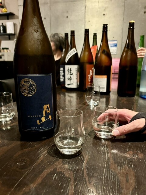こう書くと、気難しい蕎麦喰い達が形式張って食べ飲みする特殊な宴のようにも感じるかもしれないが決してそうでは無く、日本酒がススムにつれて声も大きくなり、笑顔のアクションも増え、ワイワイガヤガヤの言わばエネルギッシュな饗宴。乗ってきた黒田氏からサプライズのお酒も登場し、蕎麦喰いたちはより顔を赤らめたのは言うまでもないし、私に至っては飲み過ぎ警報発令か。