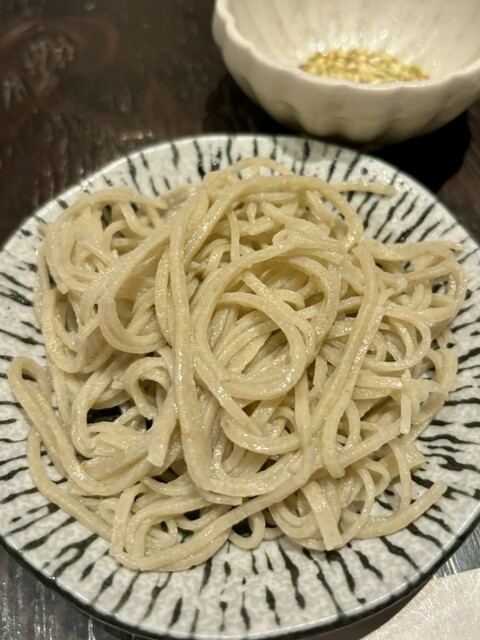今回も黒田氏らしさがどの蕎麦にもやはり表れていたが、粉により今までに無いアプローチを試しているだろう点も確認出来た。蕎麦毎に変わる器もまた目に鮮やかだ。