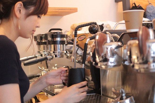 カフェラテや、コーヒーを作り、気軽に立ち寄れるコーヒースタンド。