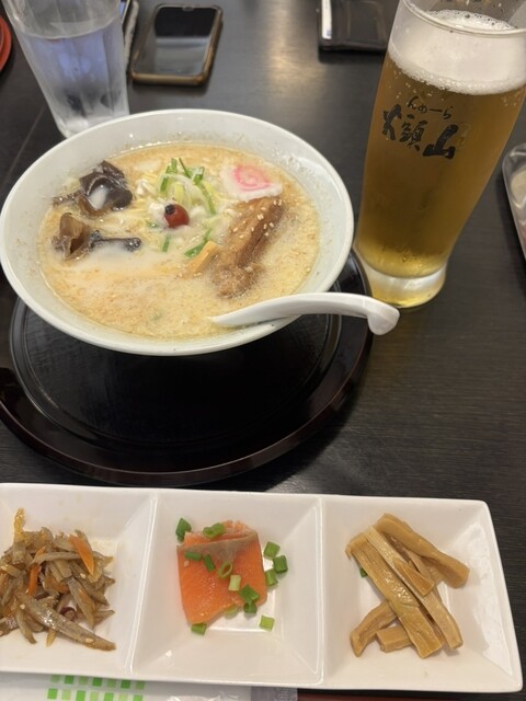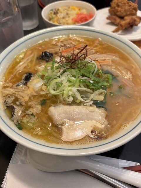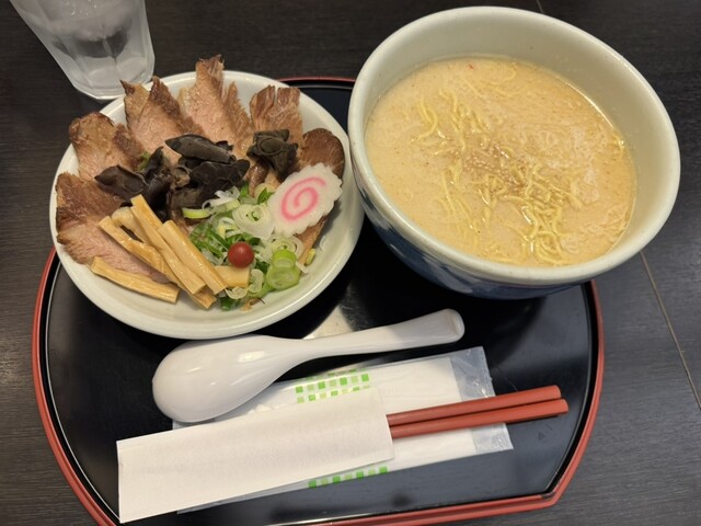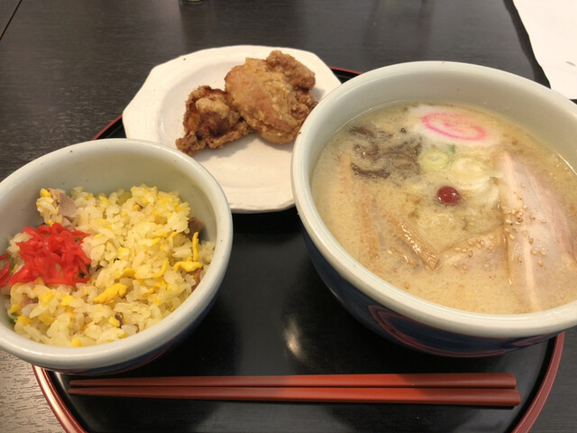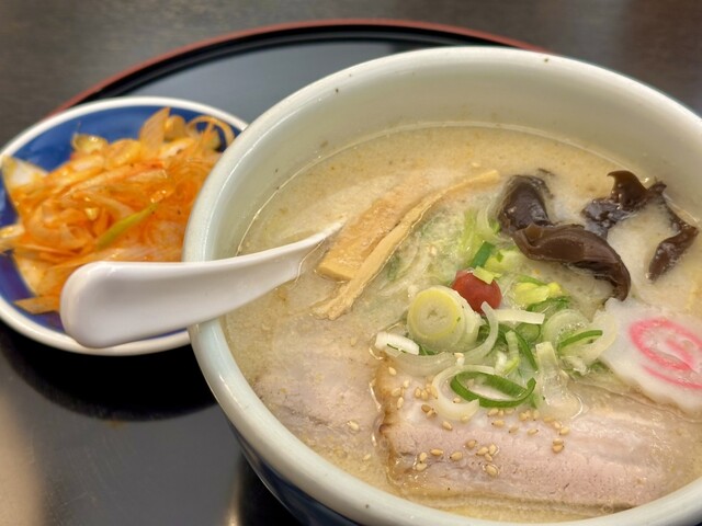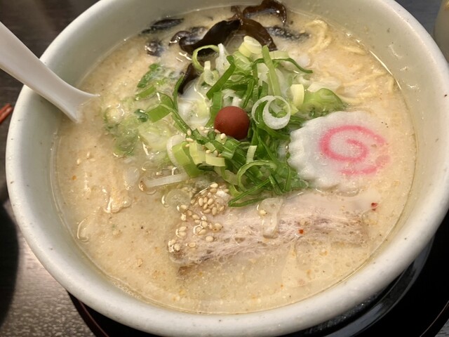 所用で近くに来ていて、久しぶりに晩ご飯で訪問したので写真だけアップします。 注文はスマホからQRコードを読み取って行うように変わっていました。 「しおらーめん(1,050円)」+「半チャン 焼き餃子定食(480円)」 しおらーめんは、あっさり系でマイルドな豚骨スープと加水が少なめの麺が... 詳細を見る