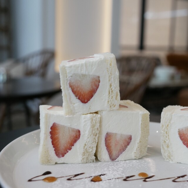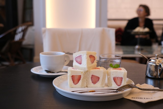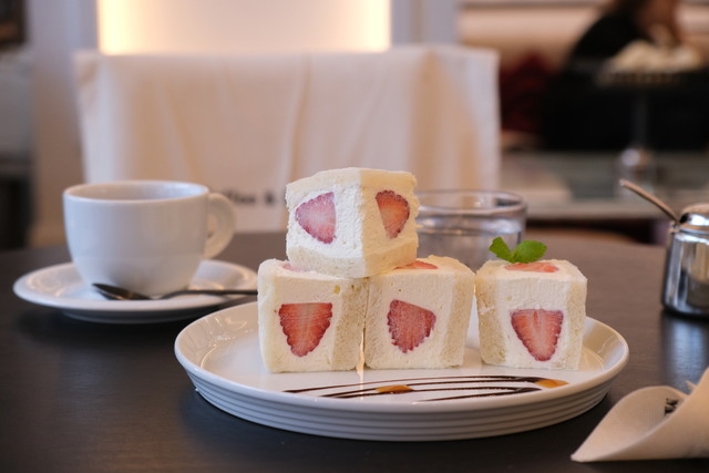 スイーツが美味しいということらしいので、今回は一番人気のフルーツサンド(いちご)とコーヒーをいただきました。