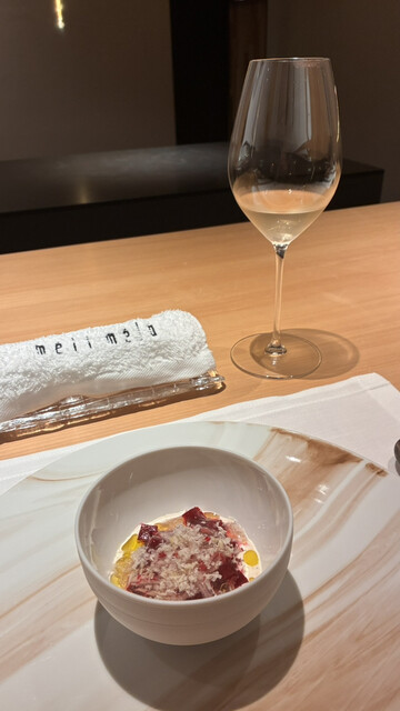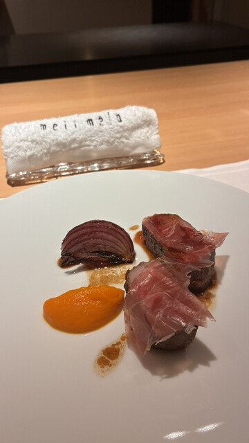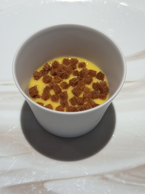 10月のメリメロさん、フルーツと酸味のバランスが絶妙な前菜からのスタートで、特に鰤の藁焼きとヨーグルトソースが正にヨーロッパの三つ星フレンチで出されるレベルの前菜でした。