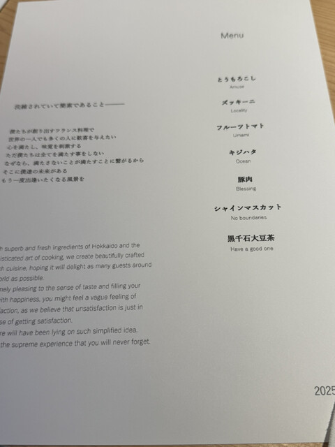 オリジナルの北海道フレンチを