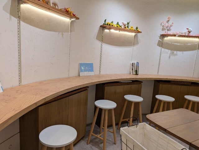 店内はシンプルで落ち着いた雰囲気。カウンター席とテーブル席があり、ひとりでも入りやすく、女子高生や若い女性に人気のスポットそう。