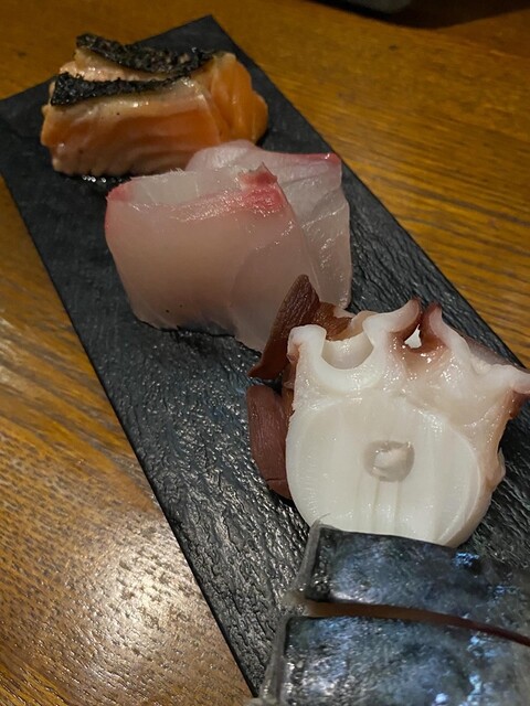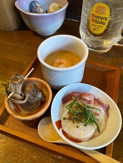 ずっとSNSで気になっていた「おちゃのま ひしん」さん、念願の初訪問でした! M’sスクエア イースト2階にあり、こぢんまりした空間ながら温かみのある雰囲気で、常連さんも多く賑わっていました。 今回は、 ・本日の刺身盛り合わせ ・くんせいオイルまぐろ ・サーモン塩麹なめろう ・芽キャ... 詳細を見る
