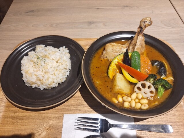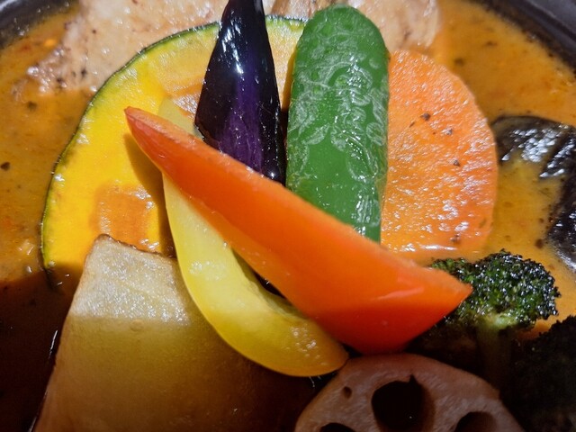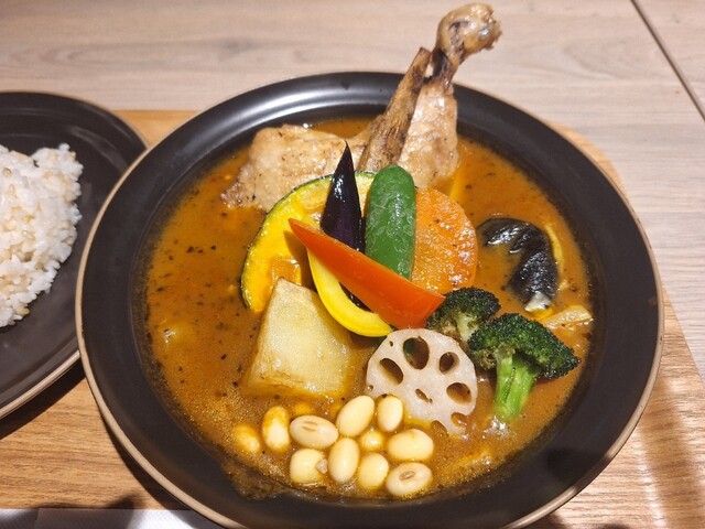 北海道札幌発のスープカレー専門店。「野菜を食べる」をコンセプトに、無添加の濃厚スープと多彩な野菜を組み合わせた一皿を提供します。鶏・豚骨、煮干を二日間煮込み、素材の旨みを凝縮したスープに、自家製スパイスを加えています。すすきの駅直結のフードコート内で、天候に左右されず快適にご利用いただけます。
