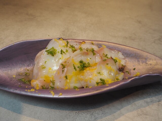 黒を基調にした店内はめっちゃシックで大人の雰囲気 落ち着いた照明の中で、カウンター越しに見えるシェフの動きがかっこよすぎて ちょっと緊張しつつもテンション上がっちゃった〜