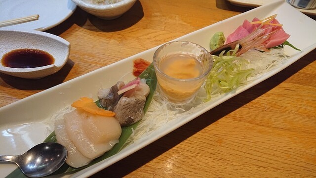 2年ほど前に宴会で利用させて頂きました。 宴会メニューも美味しくて大満足でしたので、 久しぶりのススキノでまた来店。 今回は単品注文! 前回は宴会でメニューをあまり見なかったけど 悩むほどメニューが豊富で、びっくりしました。 しかも、どれも食材に拘っているようで美味しそぉ〜!! 悩むに悩んだ結果、店内に貼ってあるランキングから結局チョイス(笑) ベーシックに刺身盛り、カニクリー... 続きを読む»