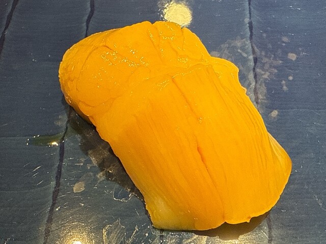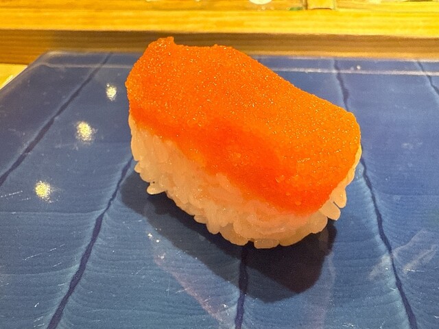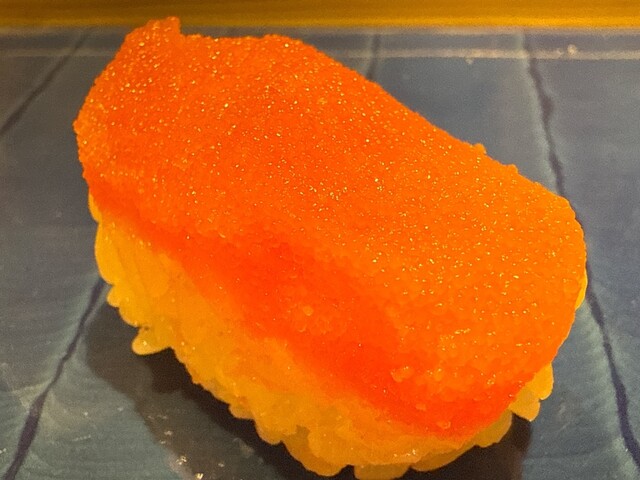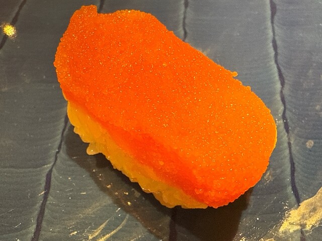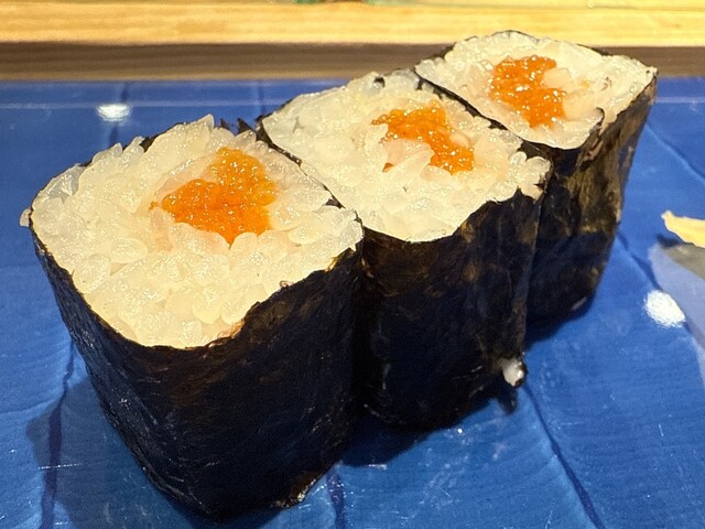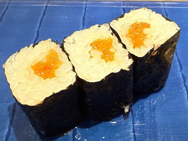 細巻きで、マスコと海苔とシャリとの組み合わせがいいですね。