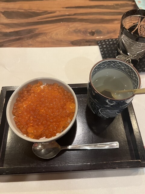 そして締めはいくら丼。お腹具合で大中小から選べます。一緒に昆布茶もついてくる。