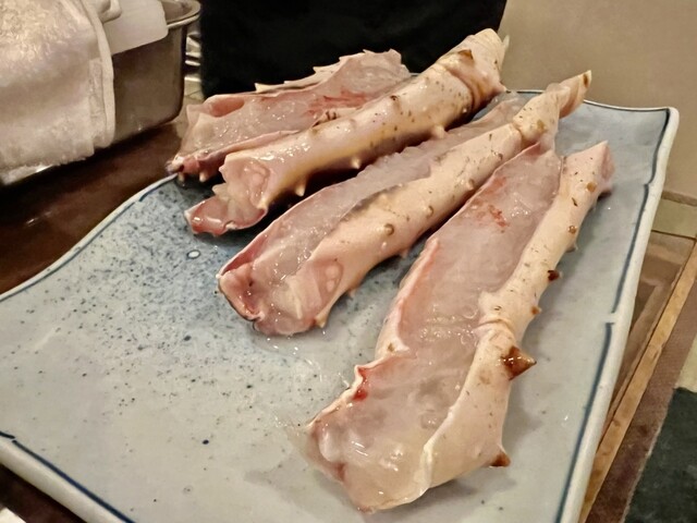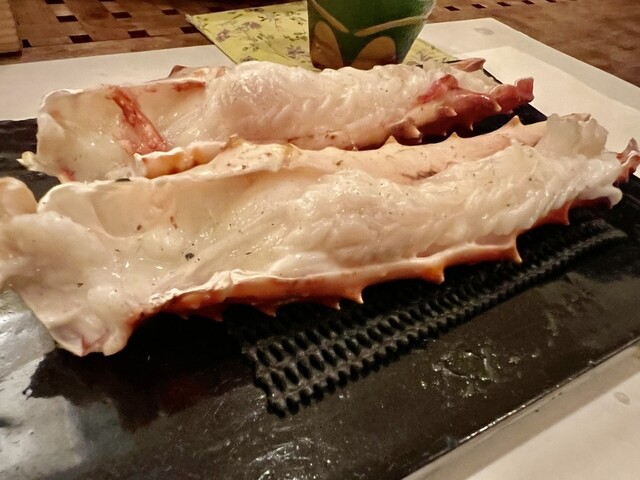 念願だったタラバガニの刺身は味も甘味もなく、ただ食感を楽しむ感じで、なるほどね〜って感じ、笑