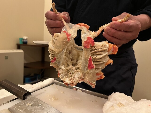 生きたタラバガニを目の前で捌いて食べさせてくれるのはここだけ。