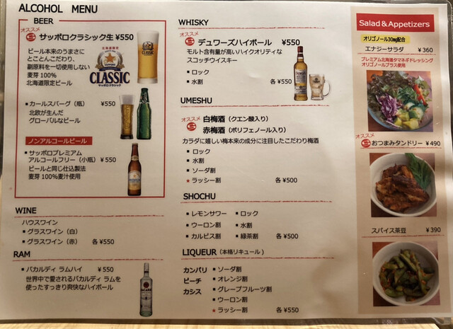 | ドリンク | 焼酎あり、ワインあり、カクテルあり |