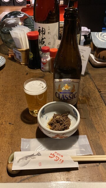 2025/04 訪問時3.39 サッポロクラシック890 ※中瓶 お通し440 ※鹿肉のしぐれ煮 こまい660 玉ねぎホイル包み焼き 数量限定550 油あげ660 ... 詳細を見る