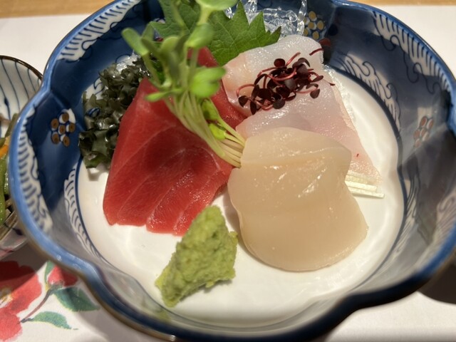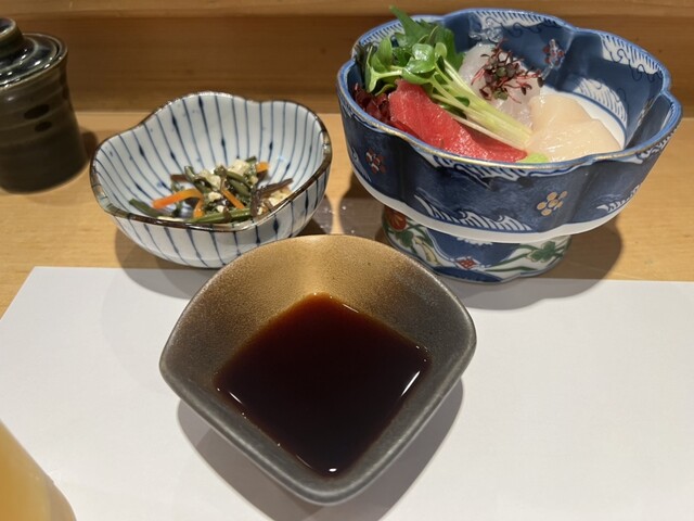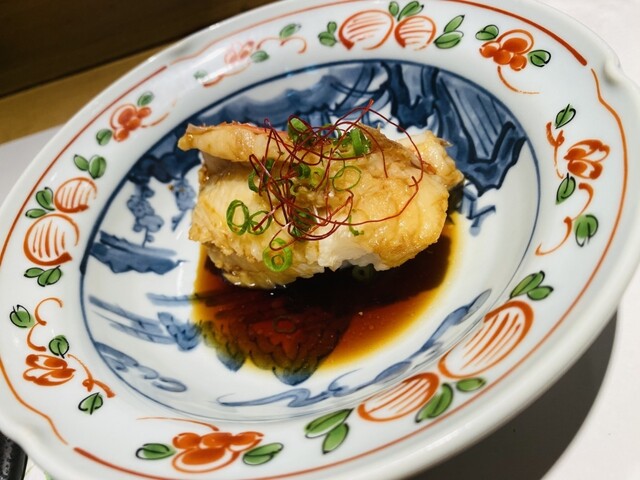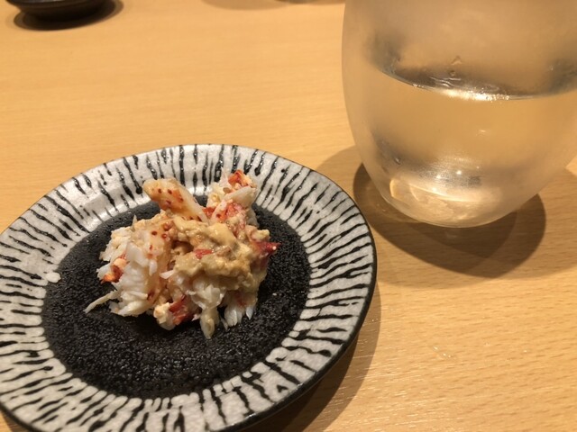 先付け、お造り、フグの唐揚げ、煮魚、お寿司を堪能。全体的に普通に美味しかったが、特に蟹のほぐ...