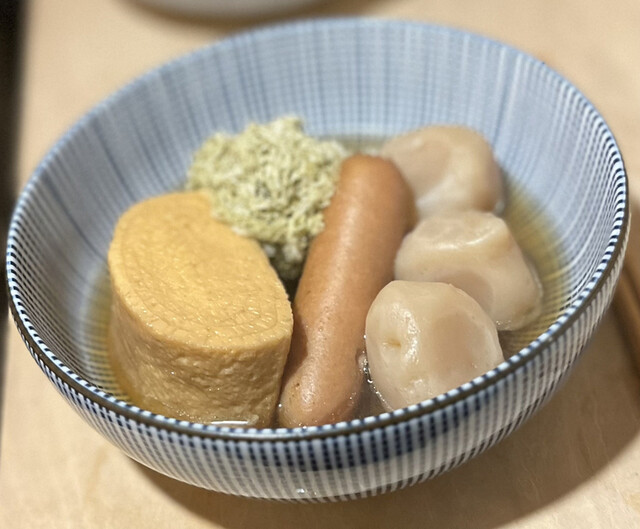 札幌ドームで桑田佳祐を堪能したあと、お店を除いていると「中に入って」との手招きで、スルスルと入場。基本、立ち飲み屋さんですが、椅子のある席に座らせてもらいました。 おでん(大根、... 詳細を見る