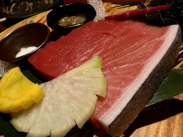 平日18:00に3名で予約して訪問。 アプローチから雰囲気ありますが、店内も屋久杉のカウンター、掘り炬燵の個室、テーブル席と守備範囲広くまた評判通りのいい雰囲気。 オーダー... 詳細を見る