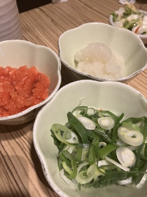 ニンニクともみじおろしとネギをたっぷり入れたタレに付けて食べると、ラムの旨味が口の中に広がります。