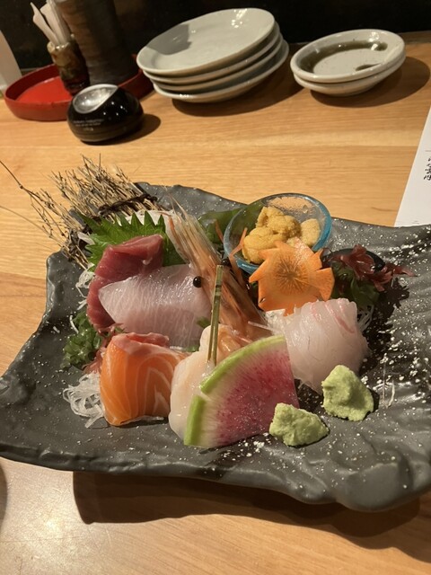 2023/06 訪問時3.36 アサヒスーパードライ(樽生)700×2 お造り7種盛り合わせ1,680 お通し600×2 ※テリーヌ、漁師漬け、小松菜おひたし、ロースト... 詳細を見る