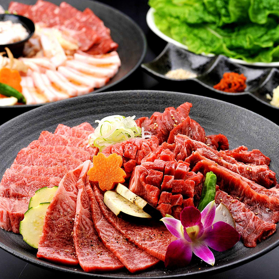 「和牛カルビ」やイチボなど、厳選された上質な和牛をリーズナブルにご提供する【旬と焼肉 さくらぎ 】。食べ放題のコースは4,500円~楽しめ、国産牛や豚肉に「石焼ガーリックチャーハン」や「鶏皮ポン酢」といった一品料理も充実しております。飲み放題付きのプランもあり、各種宴会にも最適!落ち着いた店内には、完全個室もご用意しました。また最大38名様までの団体利用もOKですので、お気軽にご相談ください◎