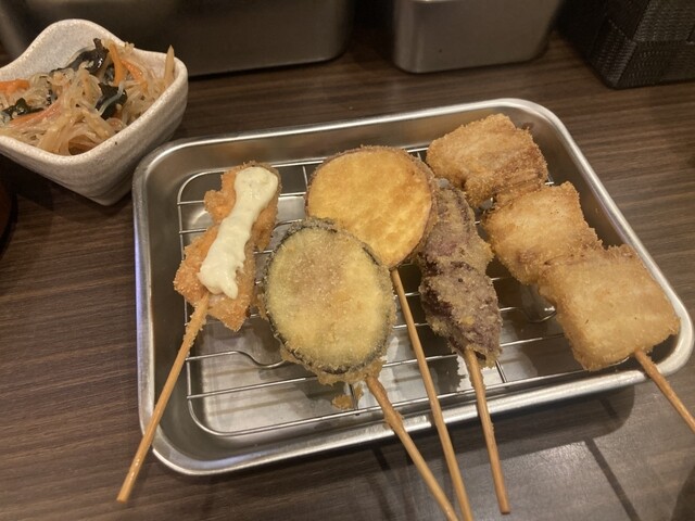 まず串揚げ。衣は軽くサクサクで油の重さを感じさせない仕上がり。野菜系は甘みがしっ...
