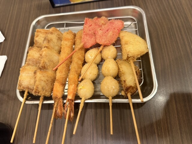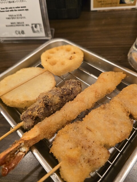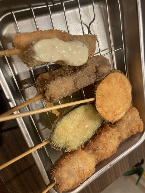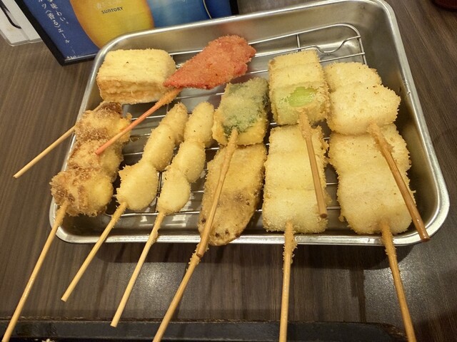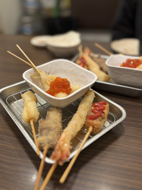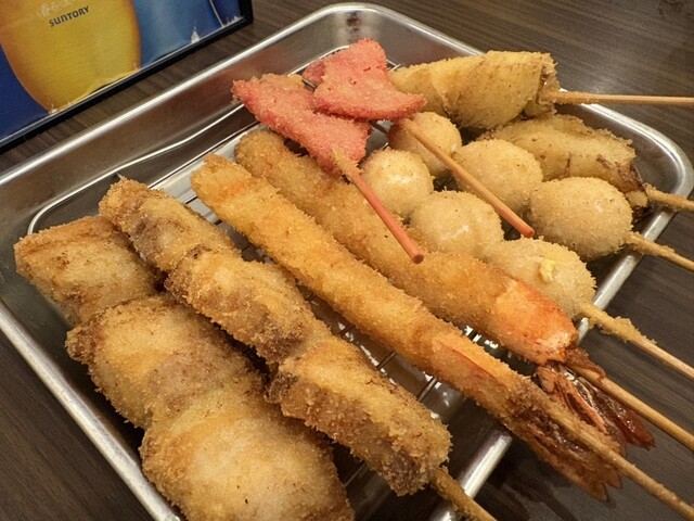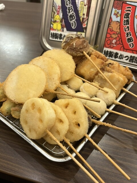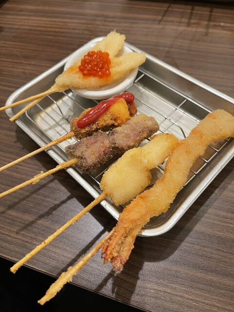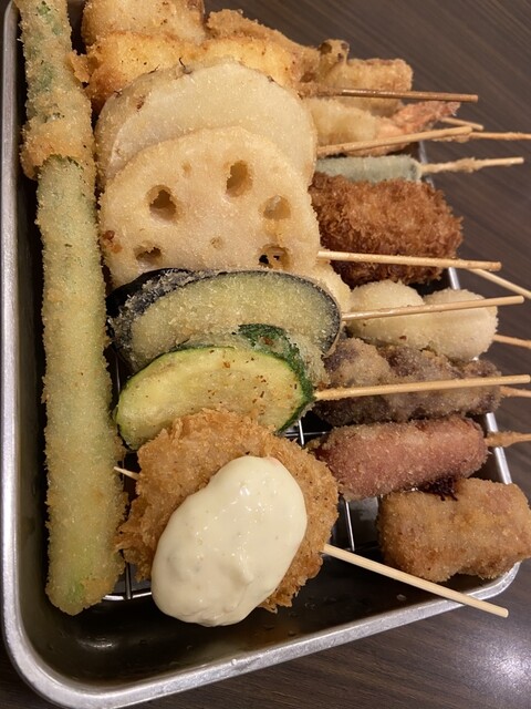サクサクの衣を纏った串カツは、素材の旨みが閉じ込められていてお酒...