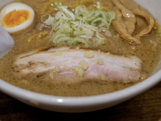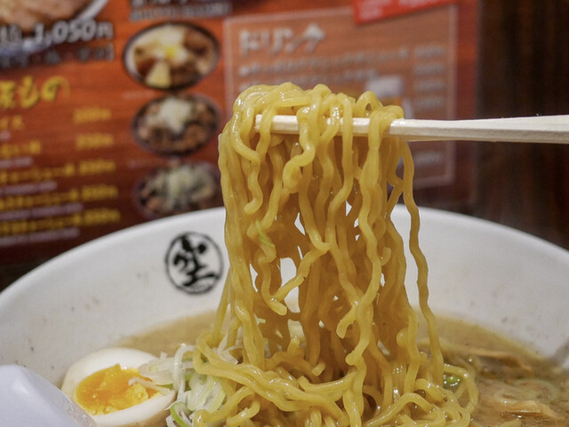 道外・国外出店経験に加え、札幌でも行列の絶えない人気店として君臨。全体的なバランスの取れた「おいしい一杯」のために、素材選びや行程のひとつひとつに力を注ぐ。道産豚から取る透き通ったスープに、焼き味噌の香ばしさが光る。ややこってりながら甘みのある独特の味がクセになる。