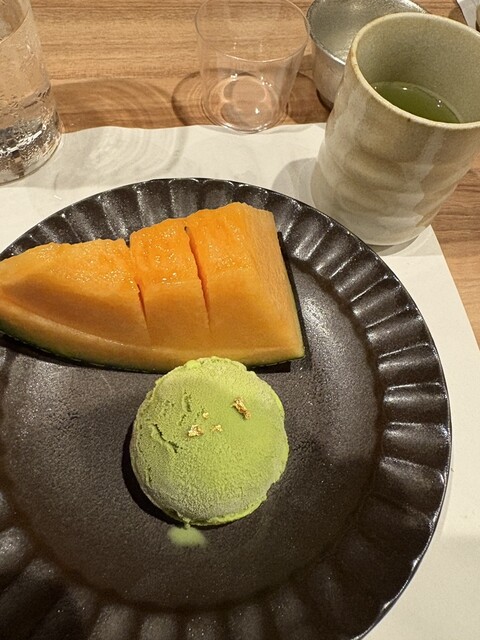 牛乳が得意じゃない友人の為に事前に聞き取りをして下さって、デザートは抹茶アイスとメロン。