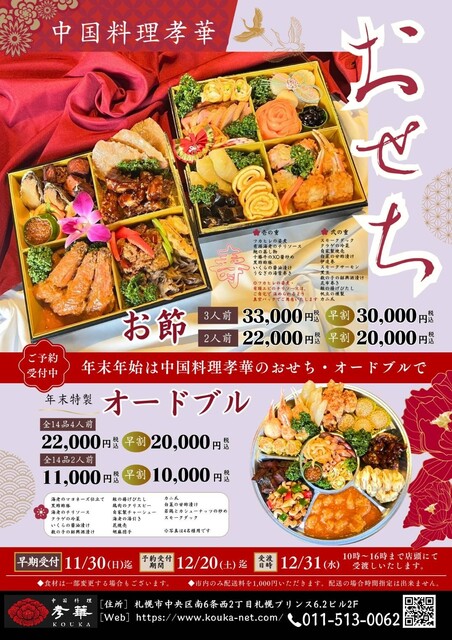 12/28、29日は年末オードブル仕込みの為ディナーのみの営業とさせていただきます。