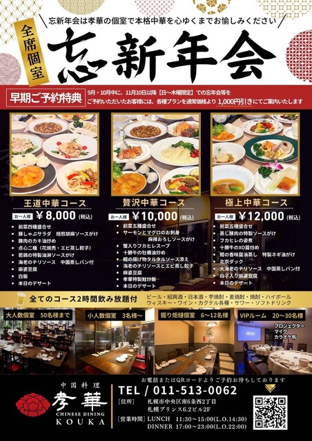 | サービス | 2時間半以上の宴会可、お祝い・サプライズ可、テイクアウト |