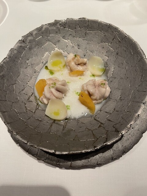どのお料理も食材の組み合わせがとても好みで、最初から最後まで大満足でした。特にカリフラワーと白トリュフと発酵バターのお皿がとっても濃厚で香り高く最高でした。パンのバターやオリーブオイルも美味しかったで...
