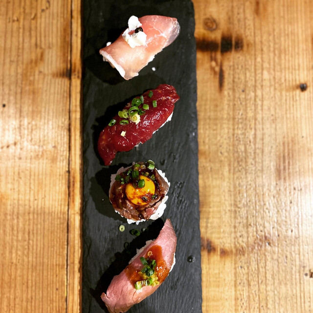 北海道産和牛など上質なお肉を丁寧に握る【肉のお寿司】が自慢