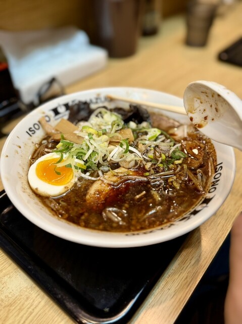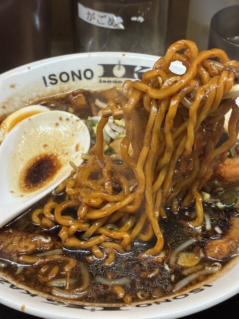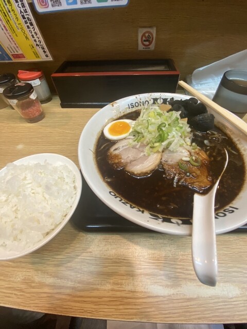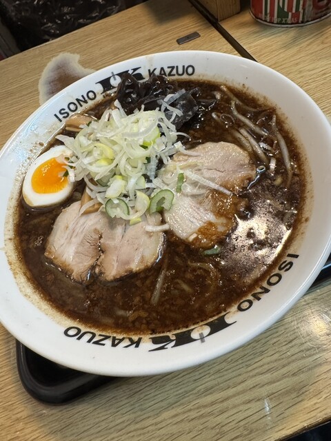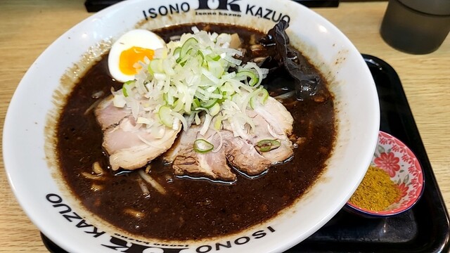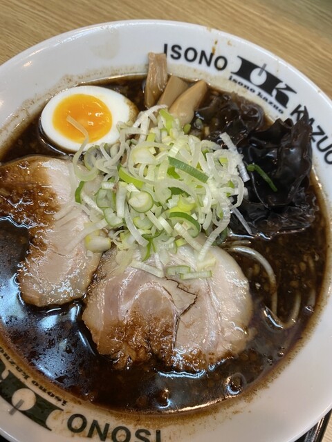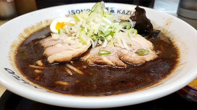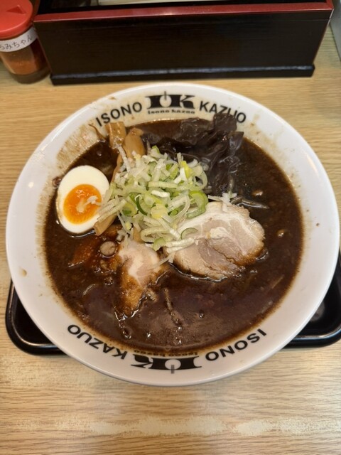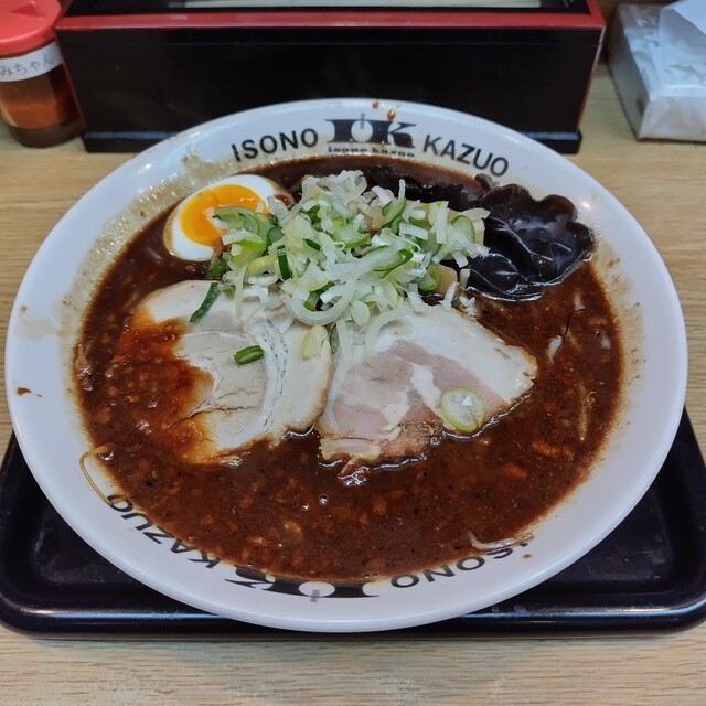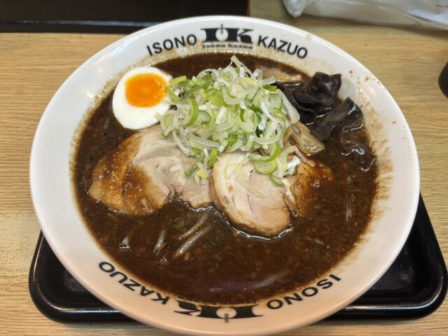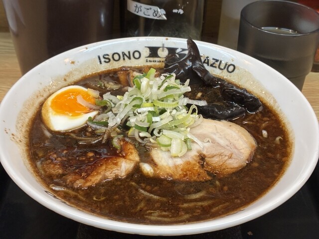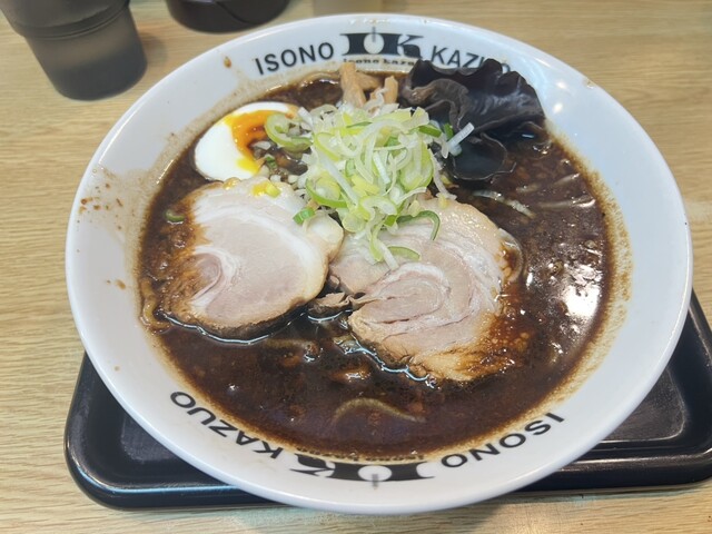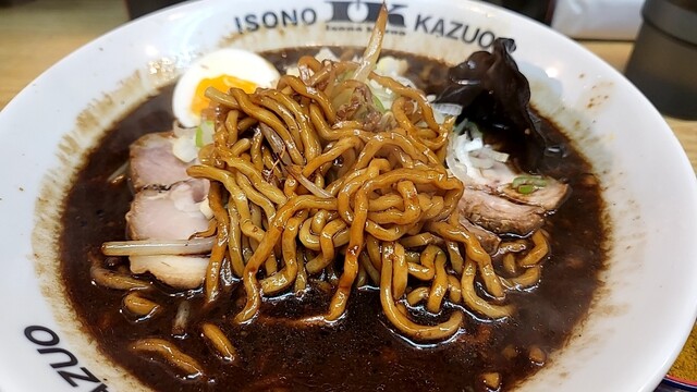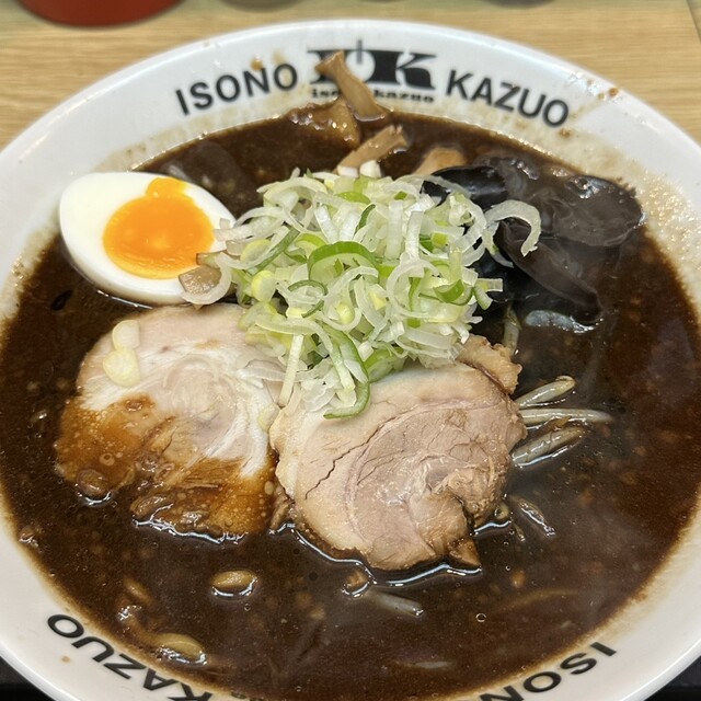 いそのかずおのラーメンは、見た目のインパクト抜群な真っ黒スープが特徴ですが、味は...