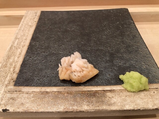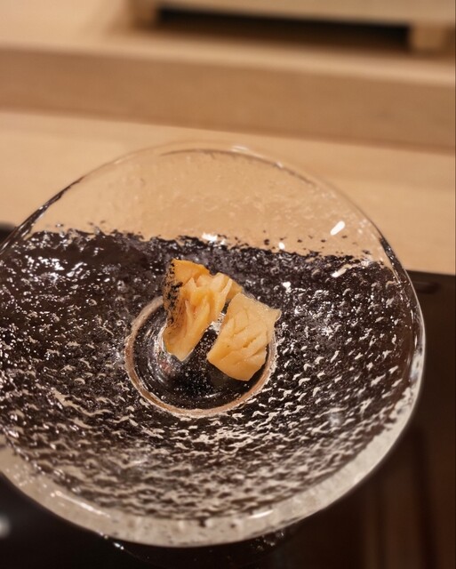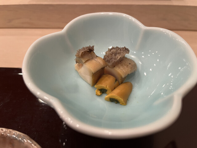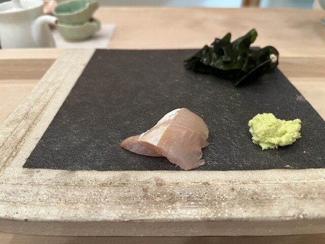 八角の昆布締めから始まりました。八角というと脂っぽいイメージだけど、昆布締めすることで大きく味が変わるんだなぁと体感しました。