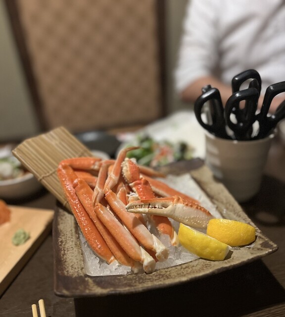 コースで行かせていただきました。一言でコスパがいい!そしてカニが甘くて味も大きくて北海道を感じました。芋焼酎のオリジナルボトルも無料で作ってくださり記念日にはすごく良いと思います。お酒の種類も多いです。