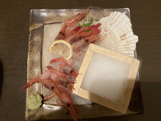 海鮮料理全て美味しいですね、 増毛産甘エビ演出と新鮮度最高でした。 ホタテバター焼き大粒で味付け超旨いです。