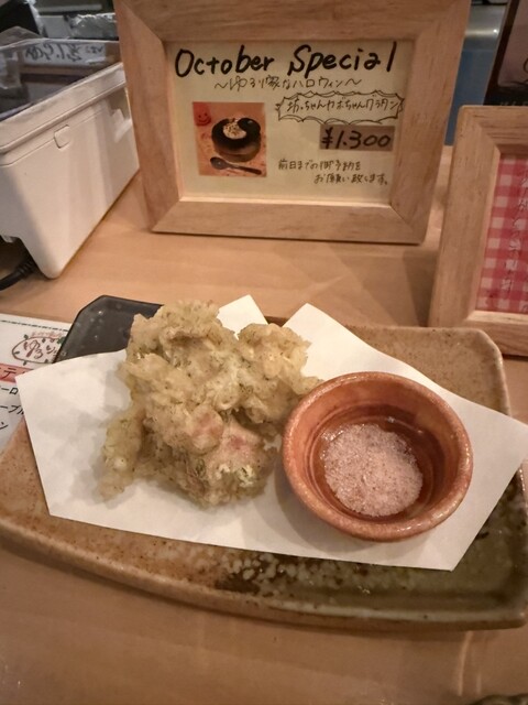 素材から作りあげる手作り創作料理の数々、定番から月替わりメニューまで豊富にご用意!店主自慢の「グラタン」をはじめ、道産刺身ホタテをレアで焼き上げる「ホタテベーコンのバター焼」、大人気「豚キムチ天ぷら」、「とうふボール」、コースは「味めぐり、おまかせⅠ・Ⅱ」それぞれ飲み放題付き、お一人様限定「晩酌セット」もご用意しております。尚、料理本来の味と香りを楽しんで頂くため、店内全席禁煙にご協力ください♪