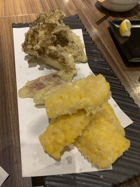 ◼️ダイアの55 お通し 500円 飲み放題 1,980円 十勝牛のザブトン天ぷら 1,680円 ポロト豚の骨なしスペアリブ焼き 890円 あなごの天ぷら 6... 詳細を見る