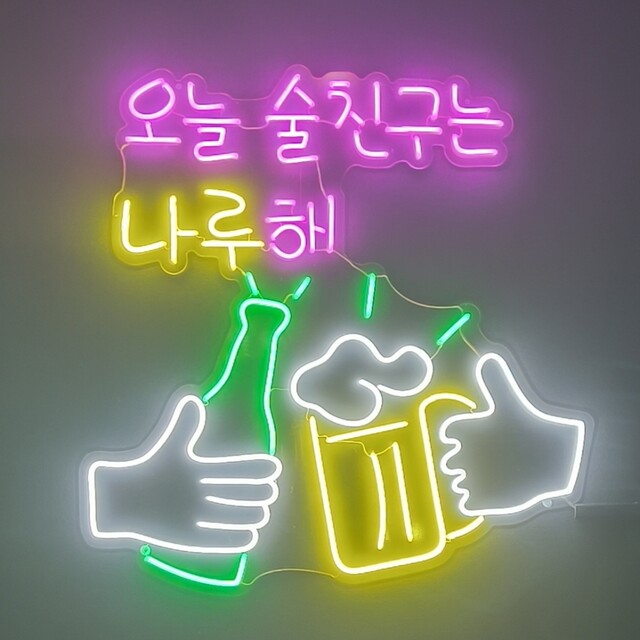 韓国風のネオンが印象的な店内