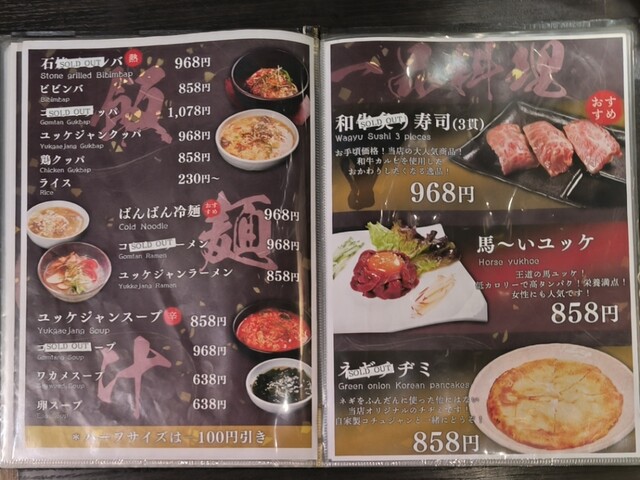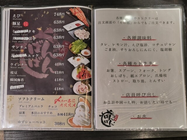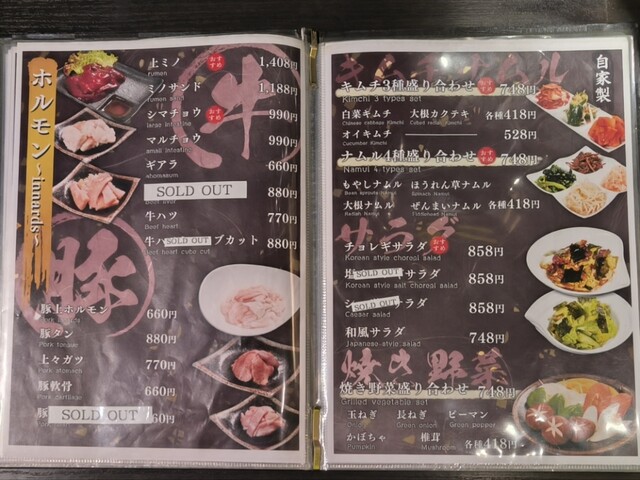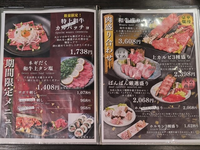 焼肉店ですがメニュー表も綺麗で