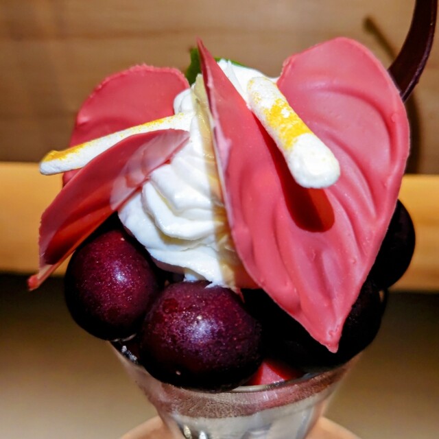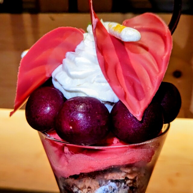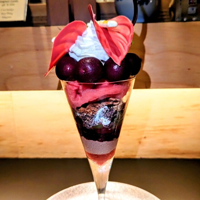 地元では「夜パフェ」という文化が根付いており、飲み会やディナーの後に甘い一杯で締めるのが定番と聞いていました。それを体験してみたくて、21:00頃にフラリと訪れました。予約はしていません。平日でも人気の高い店と聞いていたためやや緊張しました...