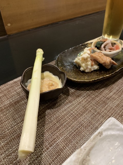 食べログ検索でピンときた店にぶらりと一人で訪問。比較的早い時間だったせいか、先客はテーブル席に4名のみ。カウンター独占、ラッキー。木を基調としてシンプルかつ高級感もあるインテリア、明るくて清潔な空間だ。 この日は次に何件か行こうと決めていたので、その旨を大将に話し、オススメ的なものを適当にお任... 続きを読む»